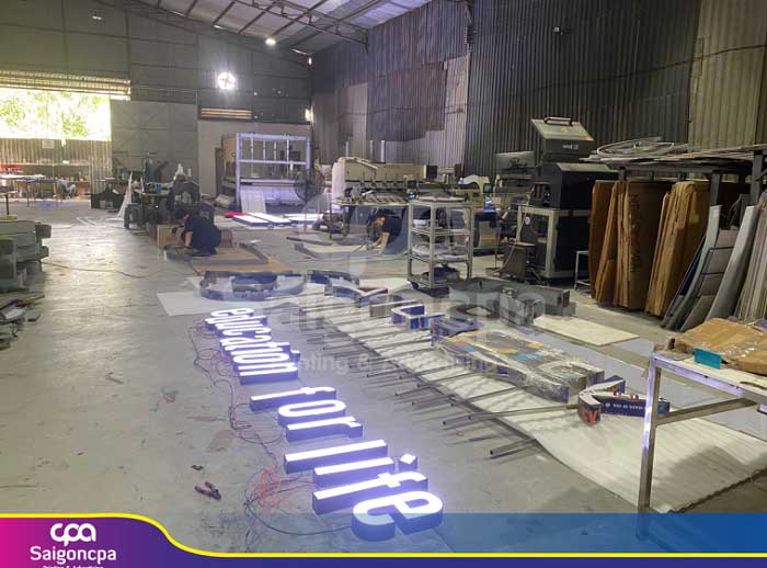 + Xưởng sản xuất trực tiếp: Trang bị máy cắt Laser, máy uốn chữ CNC đời mới nhất, giúp tối ưu 20-30% chi phí so với đơn vị trung gian.