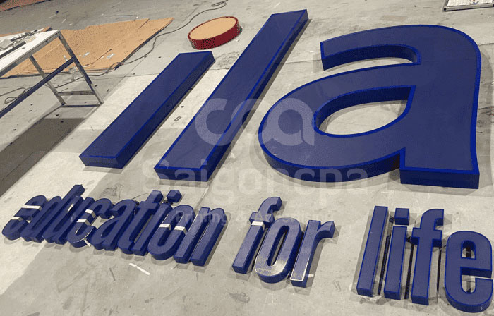 Ưu điểm: Giá rẻ hơn Inox nhưng độ bền tương đương, phù hợp làm chữ kích thước lớn trên cao.